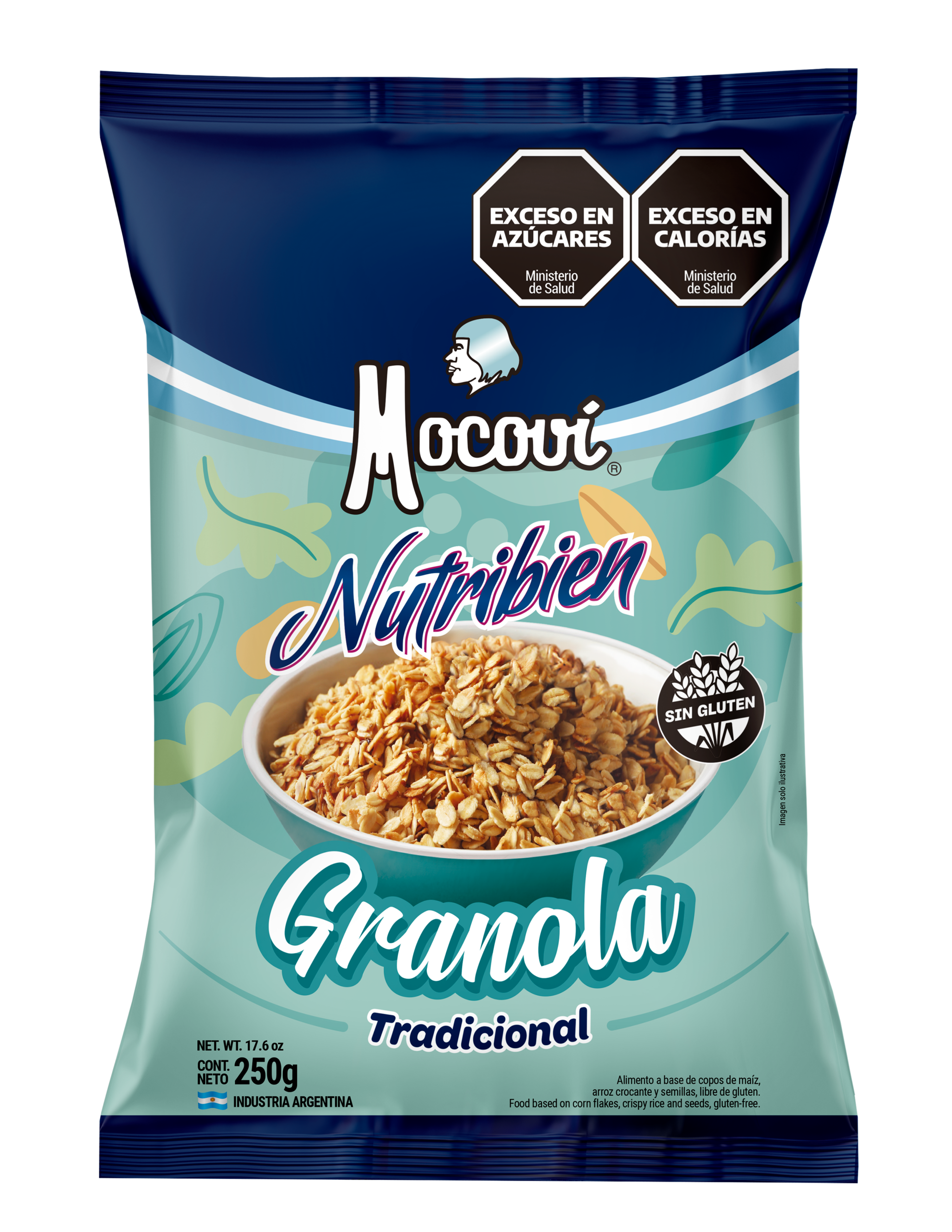 Ingredientes: arroz inflado, copos de maíz, azúcar, coco rallado, semillas de girasol, semillas de lino, semillas de chía, sal fina, aceite vegetal, EMU: lecitina de soja INS 322, ANT: mezcla de tocoferoles.
